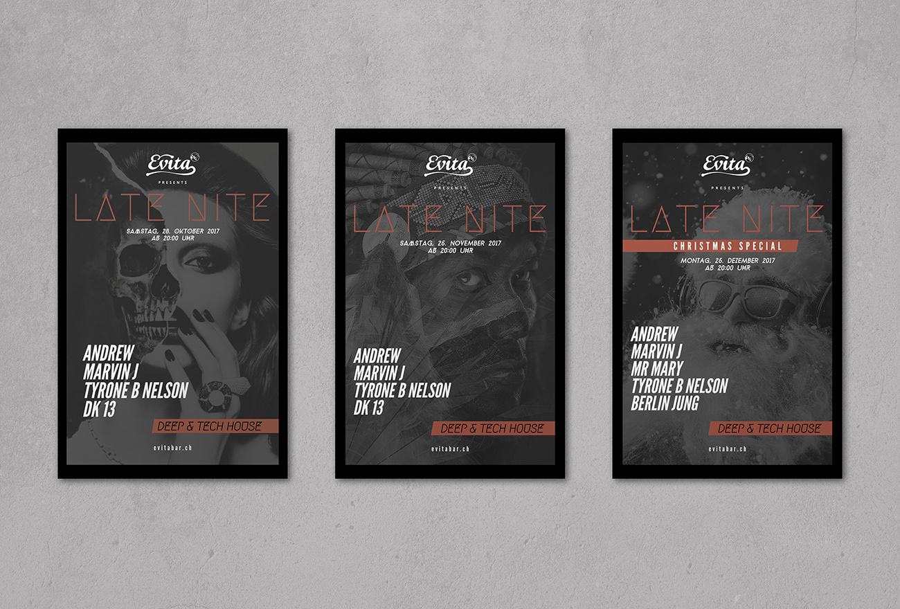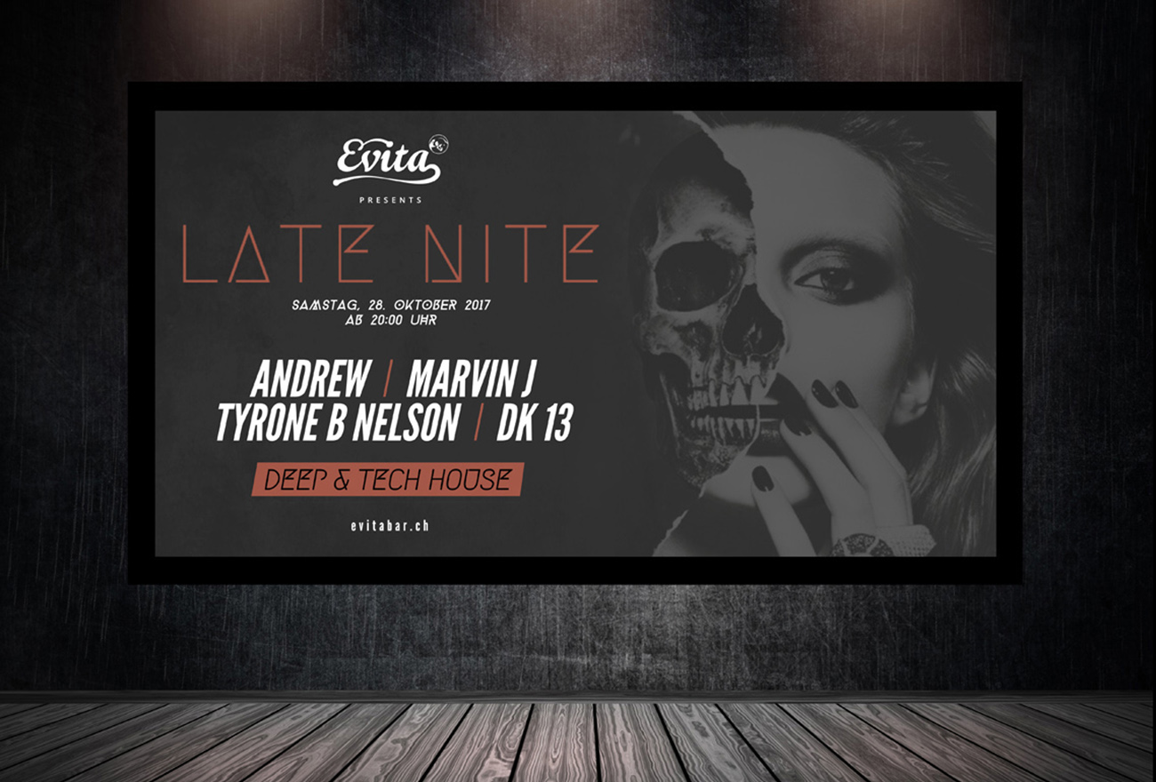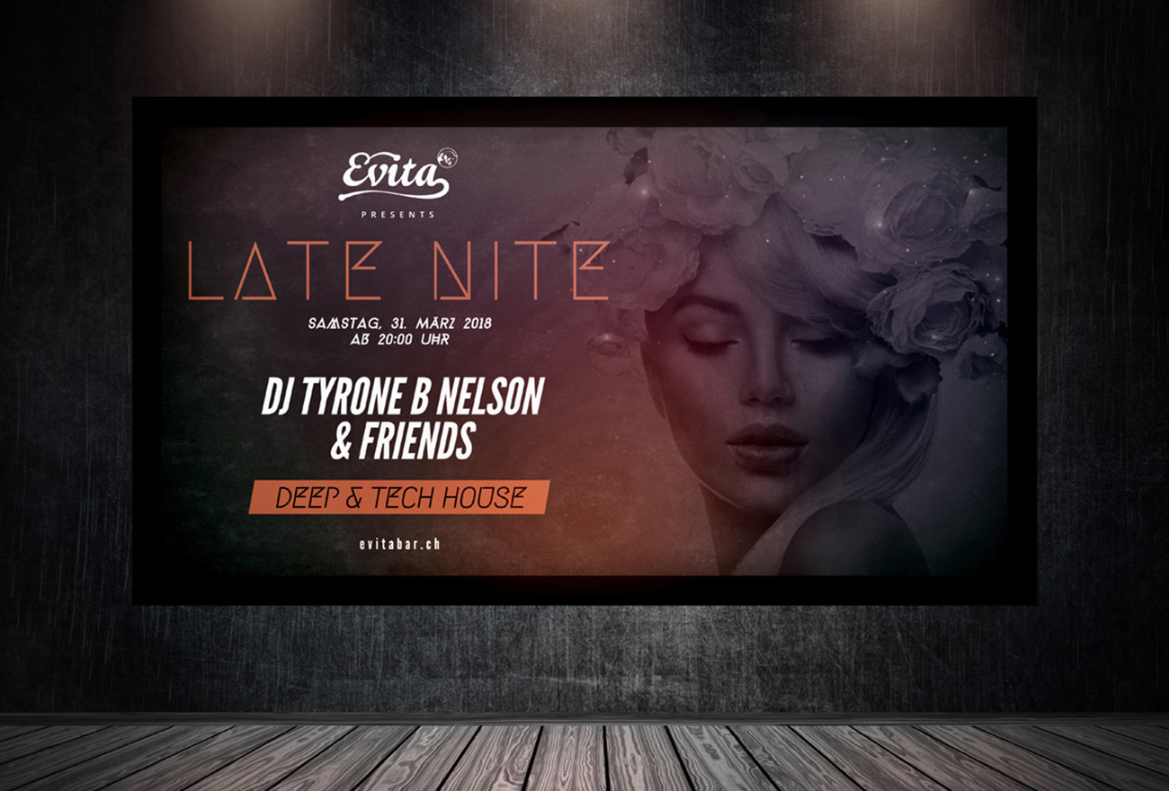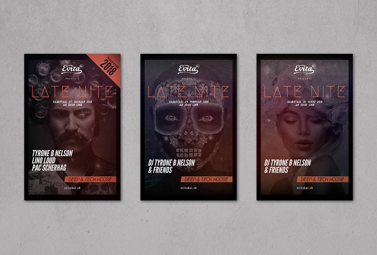 We created the logo, flyer artwork, and overall visual harmony for Late Nite, shaping a cohesive series of party flyers for the house‑focused nightlife scene.