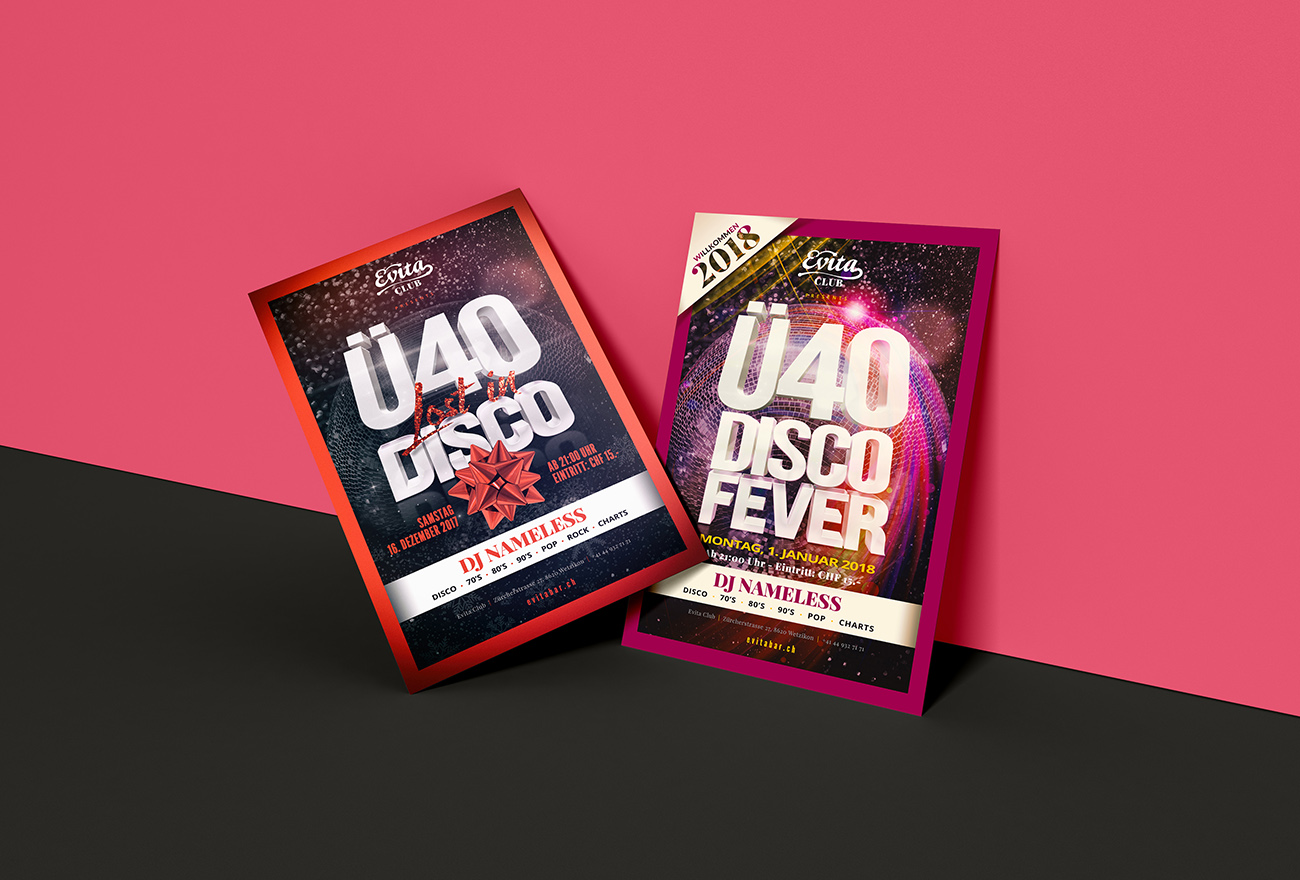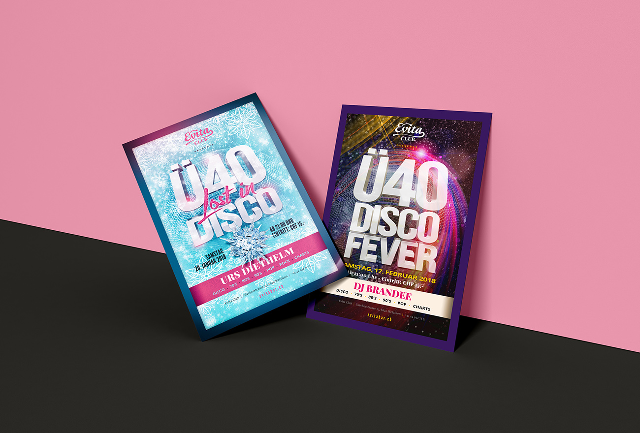 We designed a vibrant flyer and poster for the Ü40 party, creating a funky, back‑to‑the‑future visual concept that captured the event’s energetic spirit.